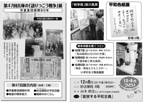2024年6日~10日まで、標記の展示会を行います。是非ご覧ください。 場所は日蓮宗のお寺、妙法華院2階の本堂をお借りして行います。神戸高速鉄道新開地駅から5分というところです。地下鉄湊川公園から10分、JR兵庫駅、神戸駅から15分ぐらいかな。 戦時中…