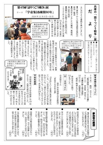 標記の実行委員会に3、4年前から加わって、行事などに参加し、そして「戦争展」の展示に協力してきました。去年の12月の展示会が47回ですから、ずいぶん前から活動している団体です。 私は、現役で働いている時は、ここまで手が伸ばせませんでしたが、…