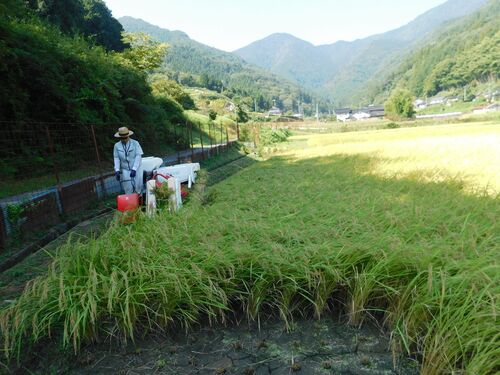 2024年4日5日の二日で稲刈りを行ってきました。場所は嫁の実家で、養父市養父町餅耕地です。たった2枚の田んぼですが、それぞれ半日かけて刈ります。 餅耕地は谷あいの村で、山の麓に家がちらほら見えていますが、ここから山に向かって谷川沿いに50戸近い家…