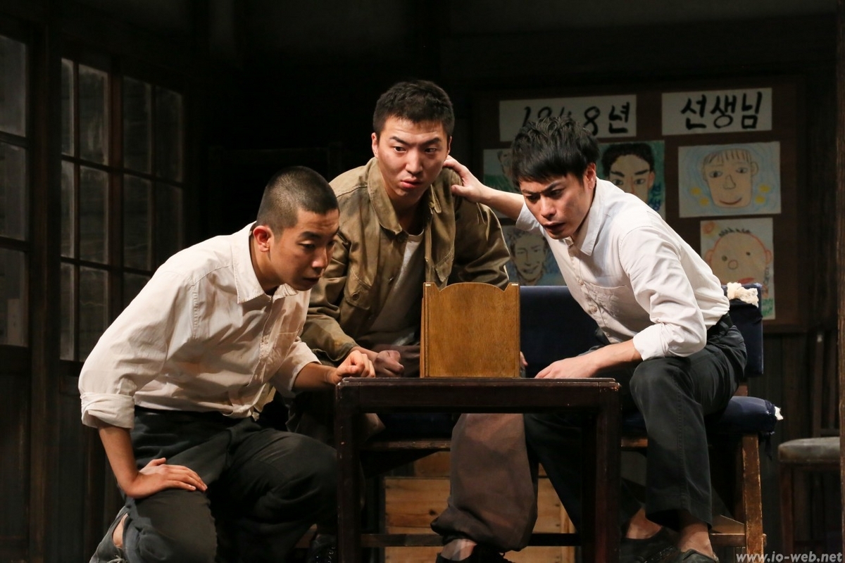 朝鮮学校に女先生がやってきました。そして朝鮮学校を卒業した4人の中学生(一人は日本人)も職員室にいました。芝居は、そこから始まりました。