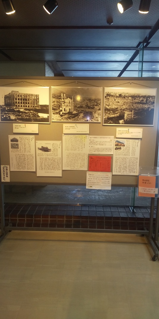 2023-11-06 2023神戸空襲と神戸港の写真展その3 学習 憲法 11月3日から写真展を始めました。今週8日の15時までです。見に来てください。 大体100点ぐらいの展示ですが、説明文が結構多くあります。 さっと見る人もいますが、熱心に読んでくれる人は30分~1時間ほど見続けている人もいます。 戦争を体験した人は、私たちに「聞いてほしい」と自分の体験を話されます。 新しく「戦争と在日コリアン」のコーナーをつくりました。写真は少ないですが、植民地支配と戦争、在日コリアンの関係が分かる説明文、年表をつくりました。